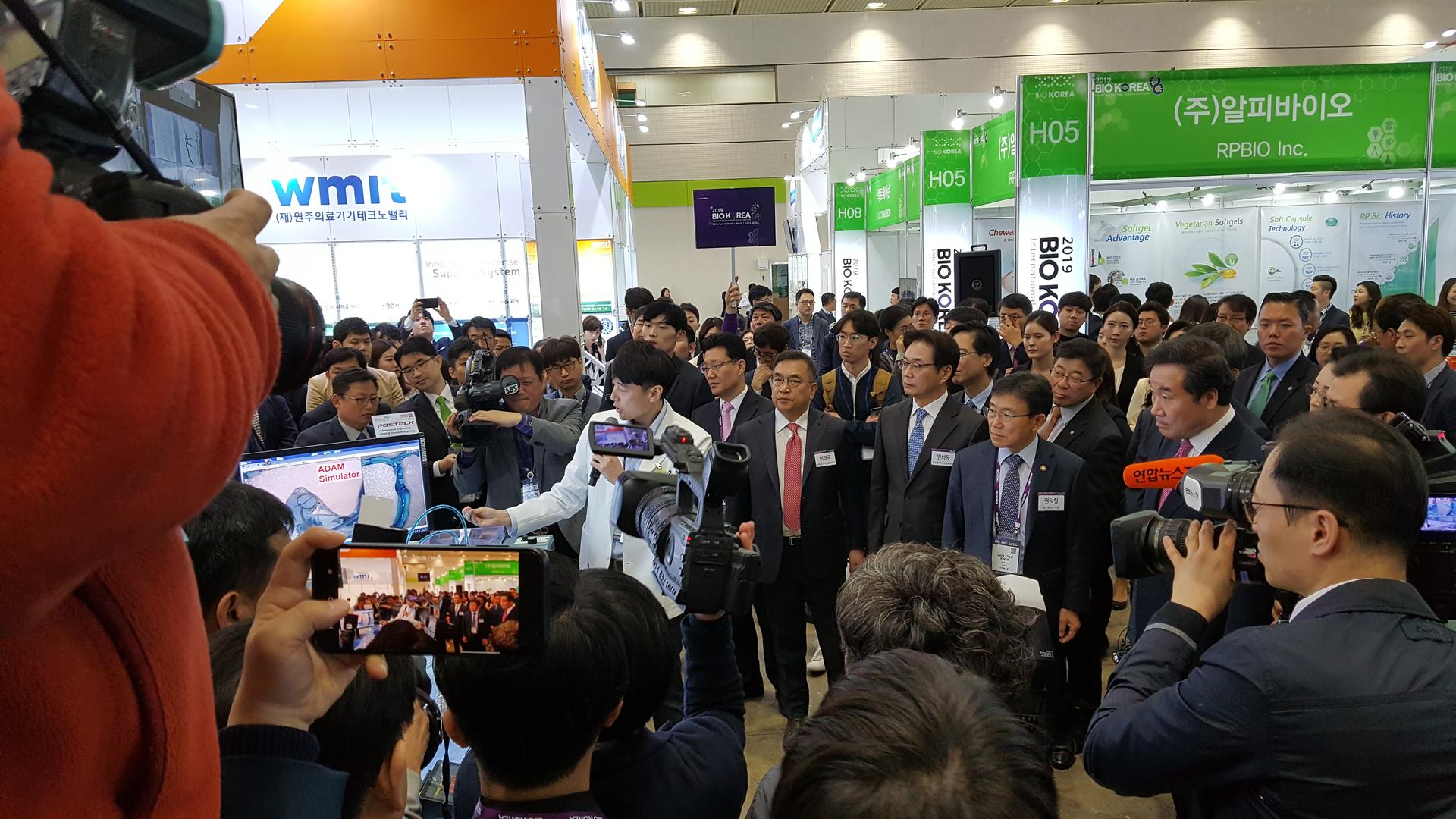 전시회 오픈하자마자 이낙연 국무총리 일행이 여기 저기 돌아다니면서 살펴보고 있네요.